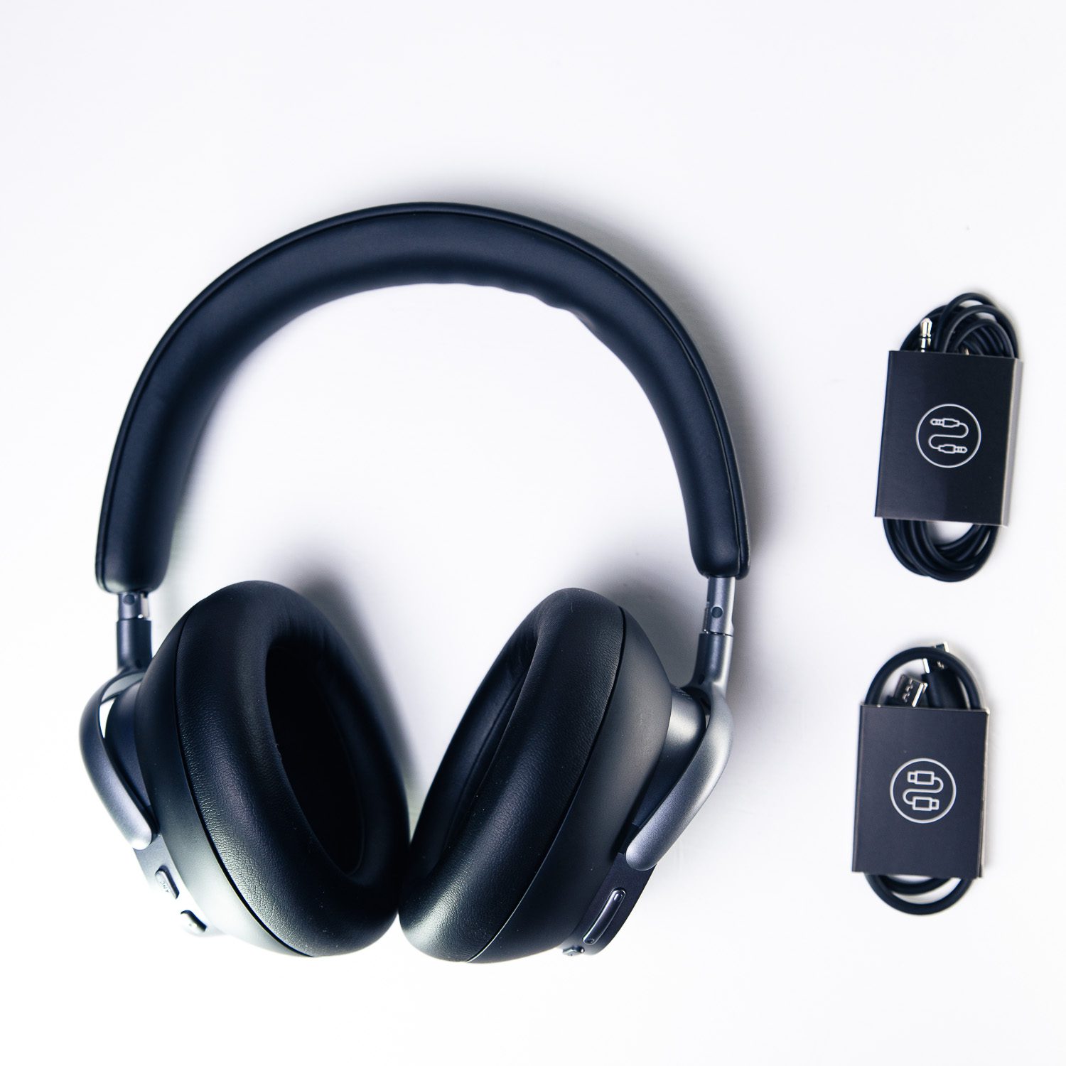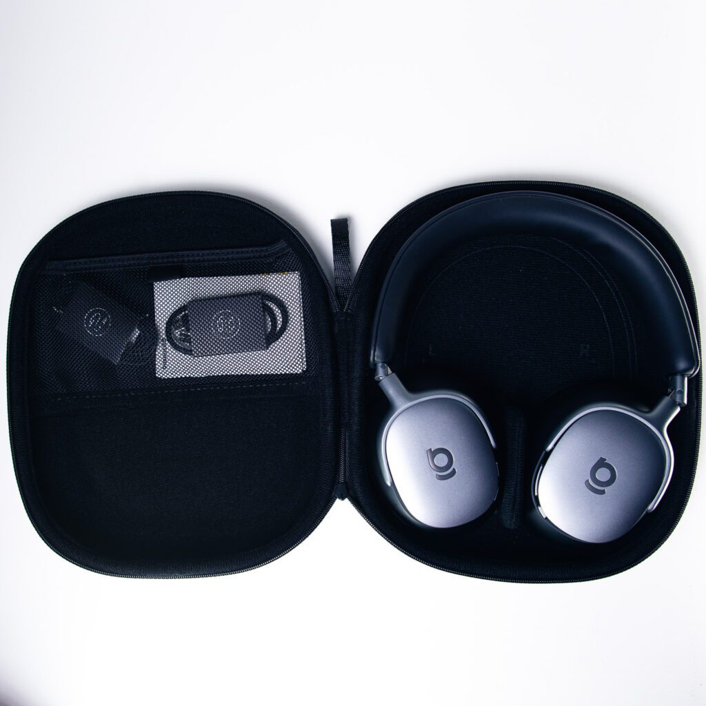 W opakowaniu znajdziemy wszystko, czego możemy potrzebować. W środku – obok samych słuchawek – znajduje się sztywne etui transportowe, kabel USB-C do ładowania oraz przewód AUX (3,5 mm stereo TRS), przydatny do gier lub po prostu wtedy, gdy chcemy mieć pewność, że muzyka zagra nawet przy niskim stanie baterii. Cały zestaw mieści się w etui. Niestety same słuchawki nie są w pełni składane – można je rozłożyć na płasko (jest dobrze, ale mogło być lepiej: 4/5).