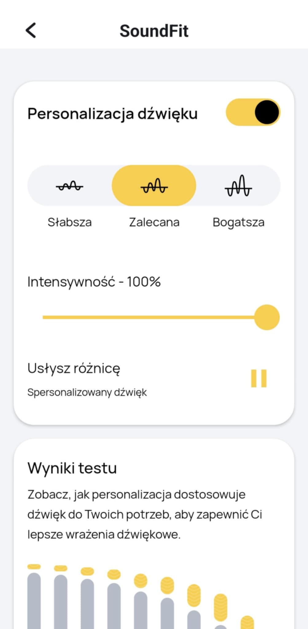 Brzmienie słuchawek jest dostrojone przez inżynierów Sound by Bose, co w praktyce oznacza wysoką kulturę średnich i wysokich tonów z możliwością podbicia basu. Jeśli wolisz równe, „monitorowe” granie, włącz SuperBalance 3.0 lub stwórz własny profil EQ (korektor jest ośmiopunktowy).