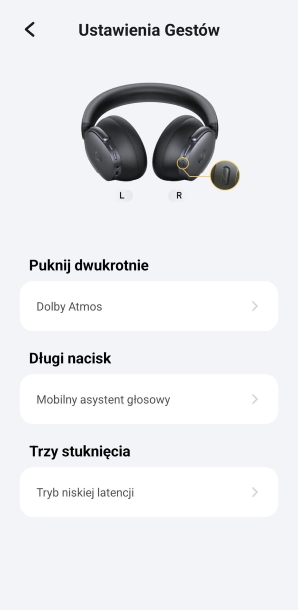 Na muszlach nie ma paneli dotykowych – Baseus postawił na fizyczne przyciski. Na prawej muszli znajdziemy: