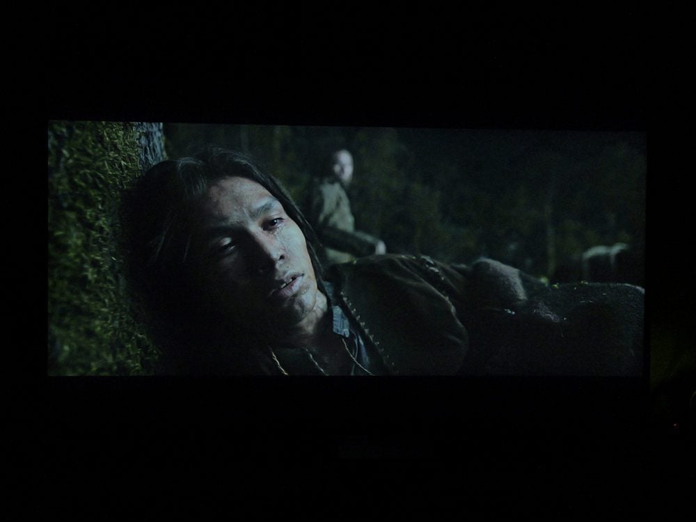 Mimo to czerń i kontrast są bardzo dobre, zwłaszcza w porównaniu do Mini LED-ów wykorzystujących panele IPS/ADS. Z drugiej strony 65QN900F cierpi na tę samą przypadłość co 65QN92F — mam tu na myśli tłumienie bądź eliminację przyczerniowych detali, bez których obraz traci plastykę. Widać to szczególnie dobrze w ustawieniach fabrycznych trybu Filmmaker w naszej standardowej scenie z filmu Zjawa (The Revenant, 2015, HDR10). Wypadła ona mocno przeciętnie (żeby nie powiedzieć: słabo), bo sporo detali zostało wchłoniętych przez wszechobecną czerń.