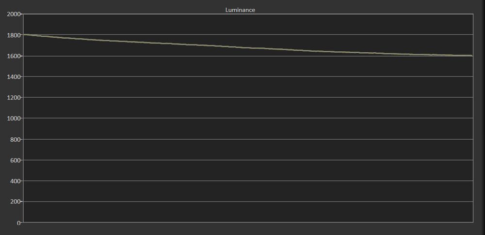 W trybie Filmmaker jasność na planszy zajmującej 10% powierzchni ekranu pod koniec czterominutowego pomiaru wyniosła aż 1658 cd/m^2, co jest bardzo dobrym wynikiem, choć o ponad 500 kandeli niższym niż w 65QN92F (2170 cd/m^2). To całkowicie zrozumiałe, zważywszy na inny (gorszy) współczynnik apertury panelu 8K.