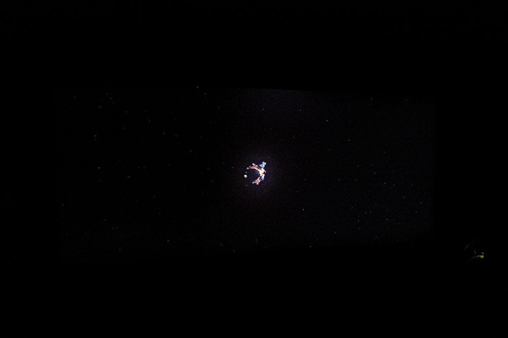 Z kolei w dużo bardziej wymagającym filmie Pierwszy człowiek (First Man, 2018, HDR10) w scenie przelotu statku kosmicznego z lewej na prawą stronę ekranu statku… w ogóle nie było widać. W tej bardzo ciemnej scenie Samsung 65QN92F tak mocno przyciemnił podświetlenie, że na ekranie nie było widać… nic — tylko pełnoekranową czerń. W związku z tym, aby nie pokazywać Wam czarnego ekranu, przechodzimy od razu do sceny z oddalającym się statkiem. W ustawieniach fabrycznych widać było w zasadzie tylko ten statek, a wszystkie gwiazdy oraz ciemnoszare tło zostały wchłonięte przez wszędobylską czerń.