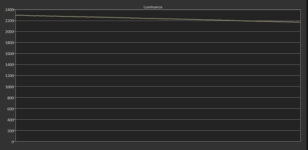 W trybie filmmaker luminancja na planszy zajmującej 10% powierzchni ekranu pod koniec czterominutowego pomiaru wyniosła aż 2170 cd/m², co jest znakomitym wynikiem.