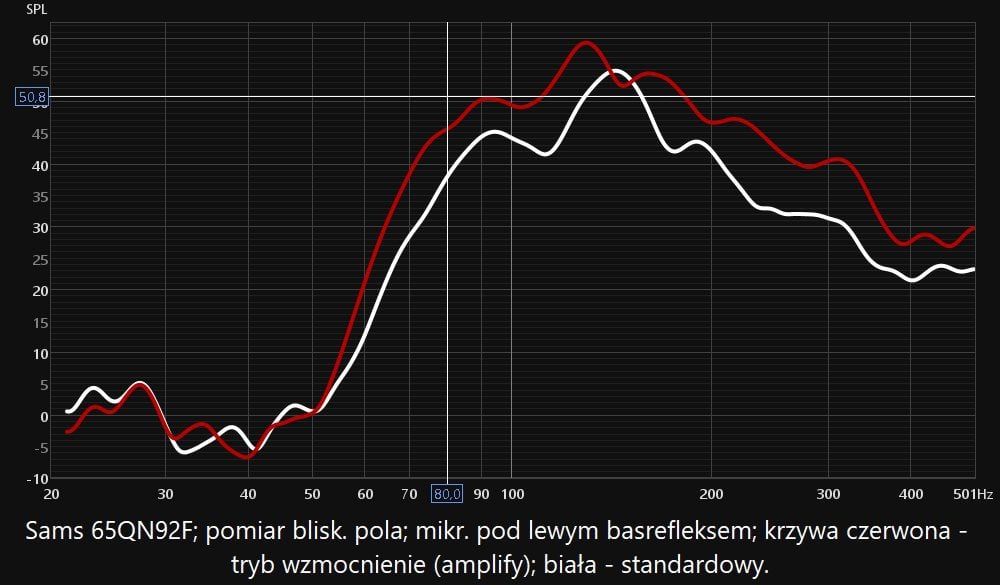 Pomiary wykazały, że charakterystyka częstotliwościowa opada dość stromo od około 80 Hz, co jest nadal wynikiem niezłym, chociaż rywale uczynili w ostatnim roku spore postępy.