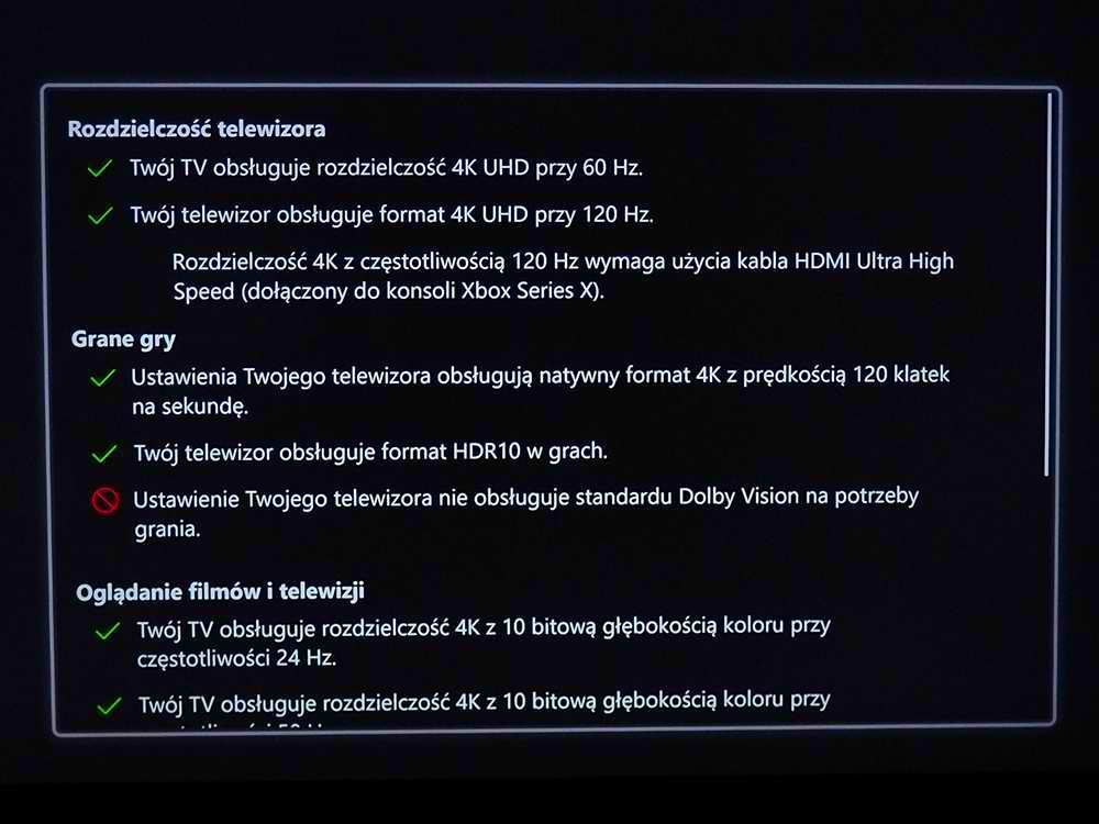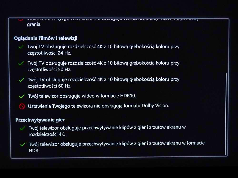 Z kolei konsola Xbox Series X podłączona do testowanego telewizora tak oto oceniła go pod kątem możliwości współpracy: