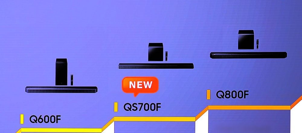 Samsung QS700F jest soundbarem w systemie 3.1.2. W ofercie producenta plasuje się pomiędzy tańszym modelem Q600F a bardziej zaawansowanym Q800F.