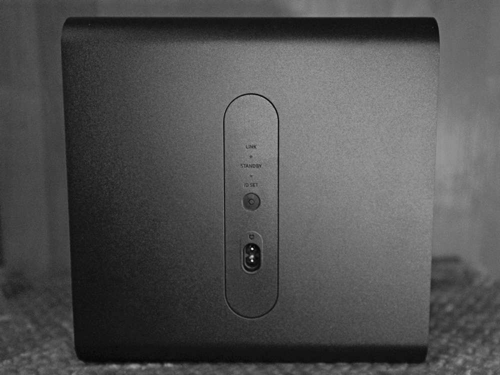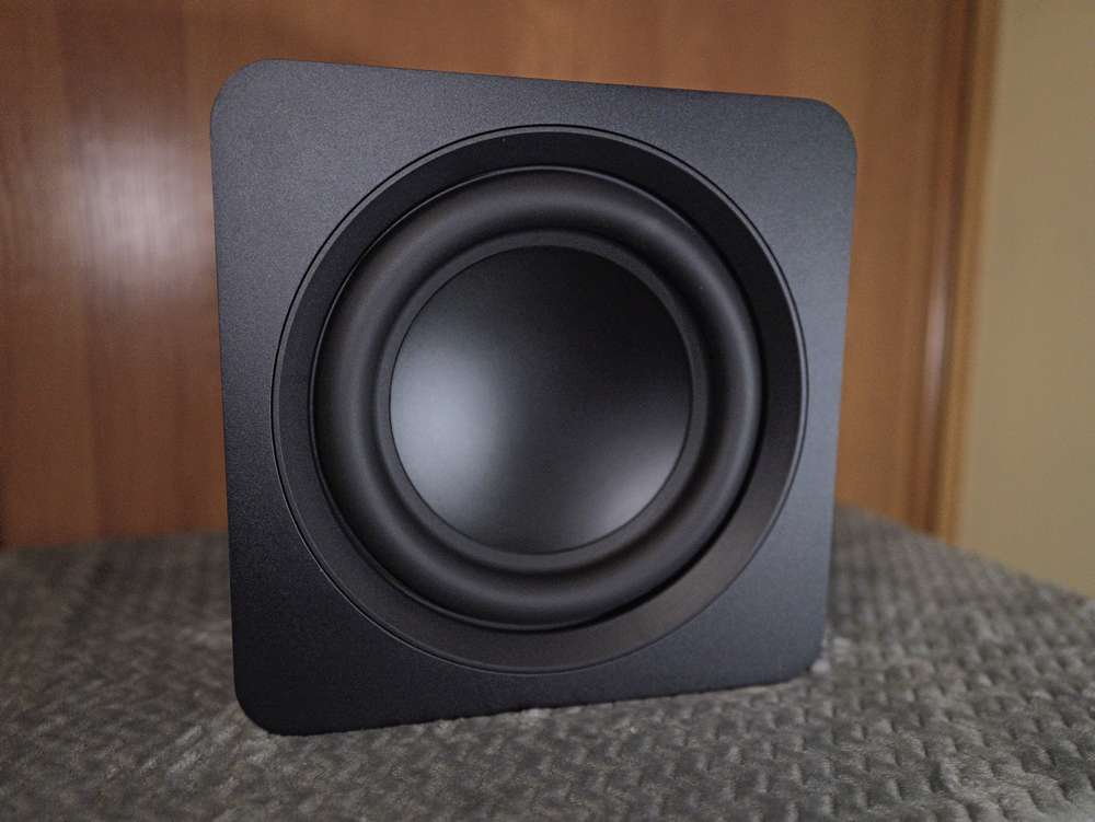…przypomina mały sześcian z zaokrąglonymi rogami i ma następujące wymiary: 249 × 252 × 249 mm. Wyposażono go w pojedynczy przetwornik niskotonowy ze stożkową membraną o średnicy ok. 14 cm. Przetwornik ten jest wspomagany przez membranę bierną o średnicy ok. 18,5 cm umieszczoną na przeciwległej ściance obudowy.