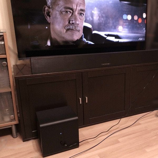 Ponieważ w QS700F – tak jak i w Q600F – występuje bilokacja głosów męskich, warto ustawić subwoofer jak najbliżej belki.